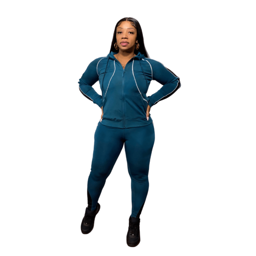 - Piping Details, Full Zip Hoodie Jacket with Legging set.