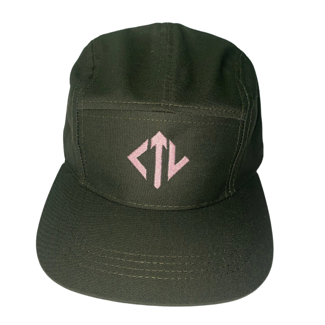 Army Green/Pink / 5 Panel Hat / Adjustable Strap