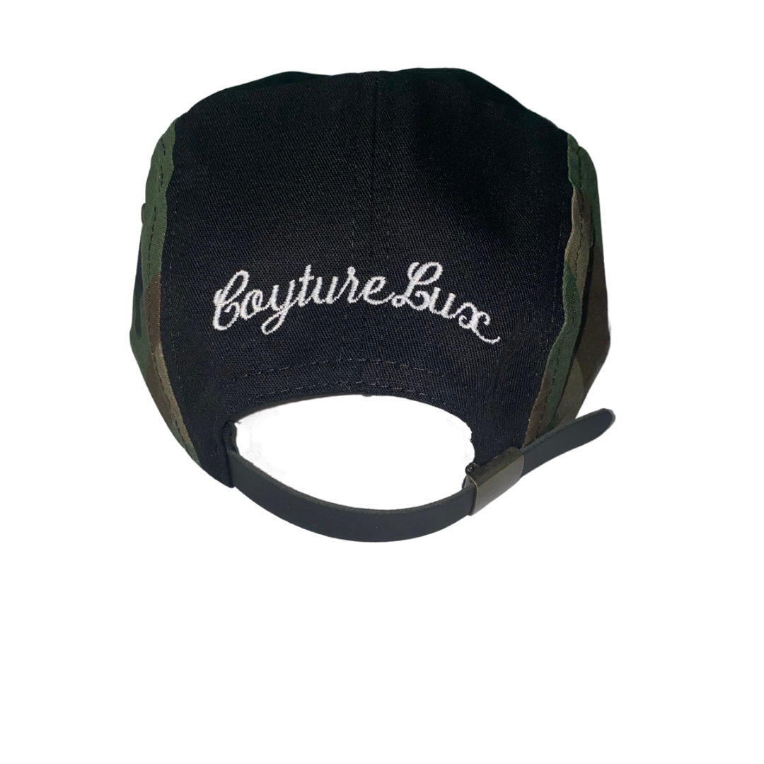 Our Embroided Logo 5 Panel Hat has CoytureLux Logo in front and Signatue in back and has an adjustable strap. It can be dressed up or down for any occasion.