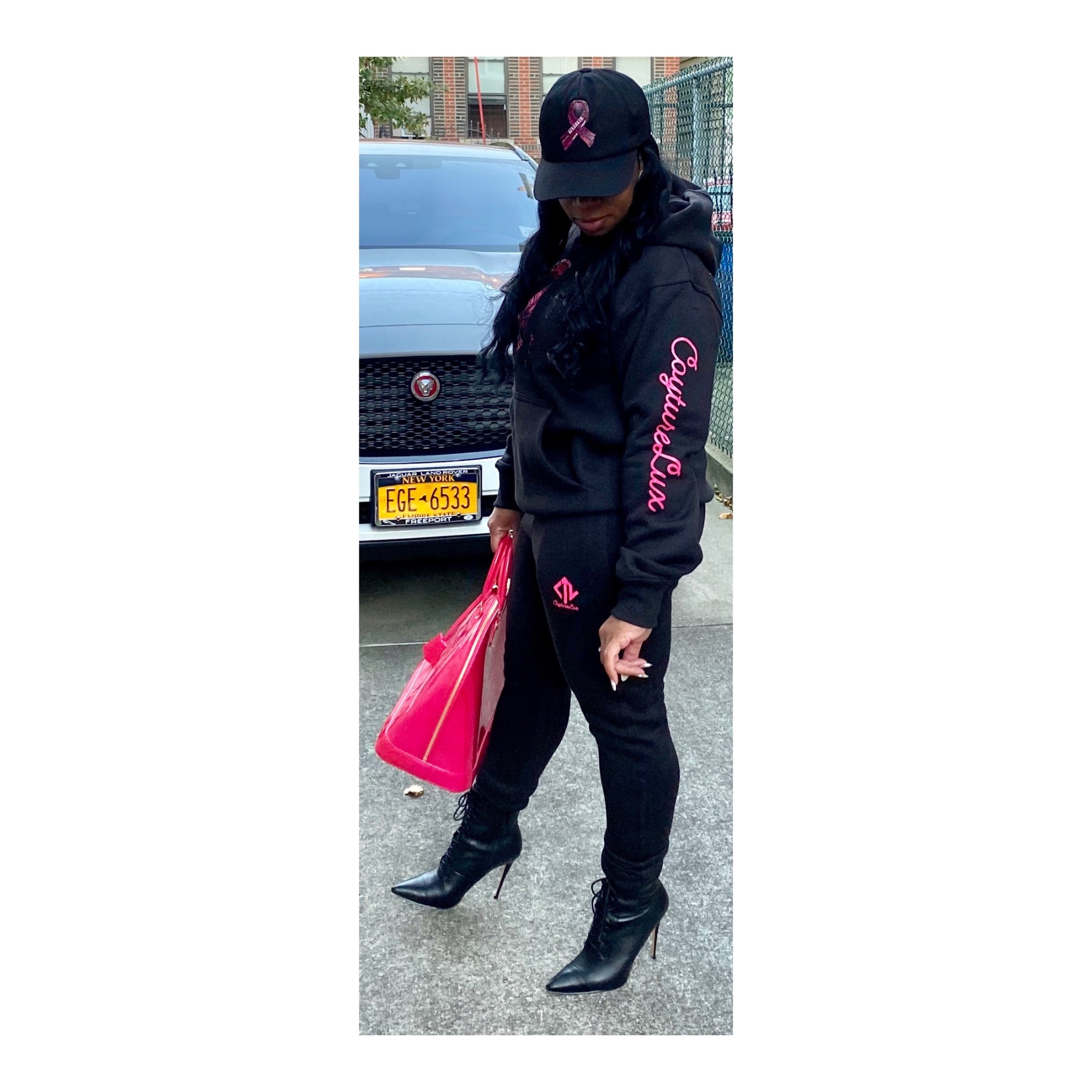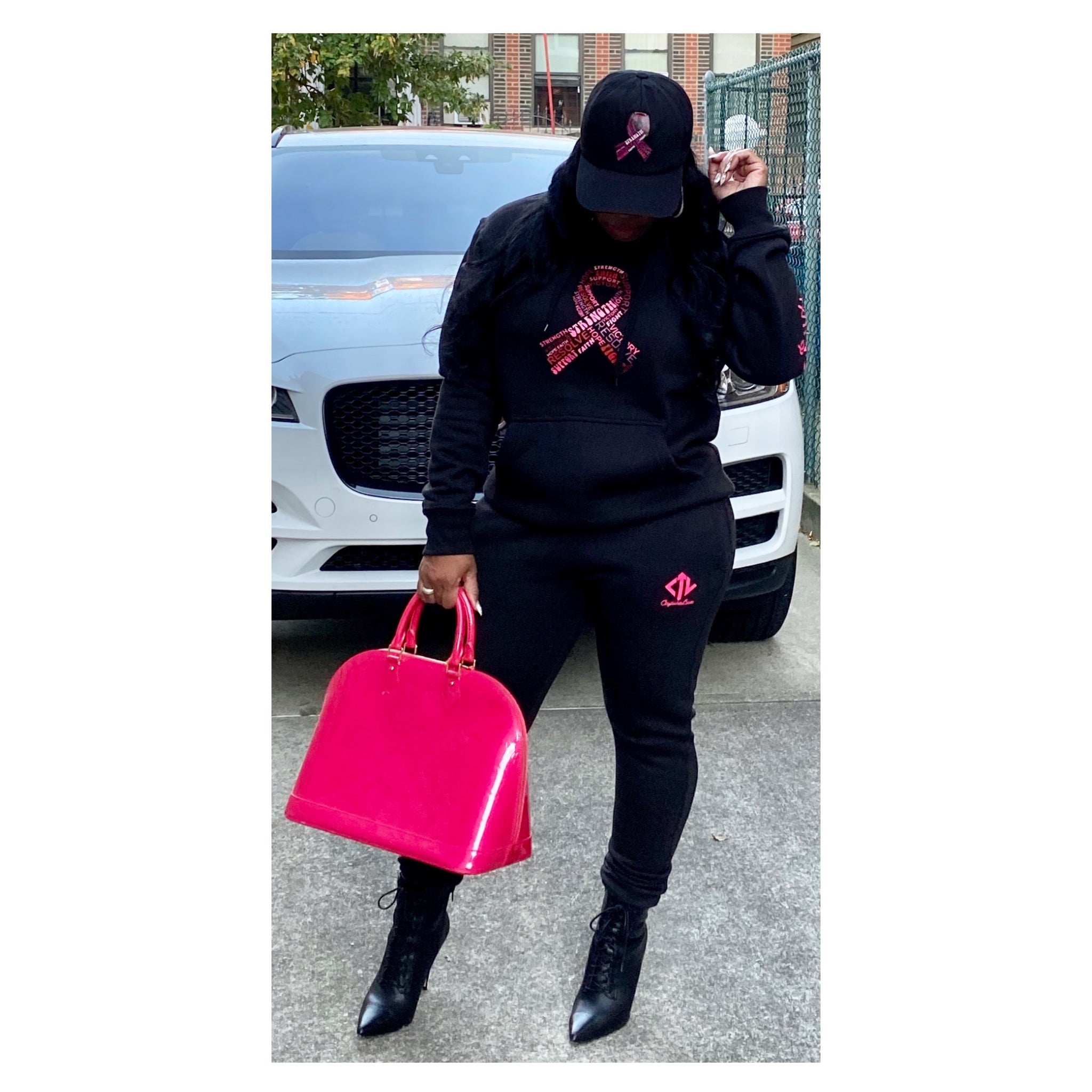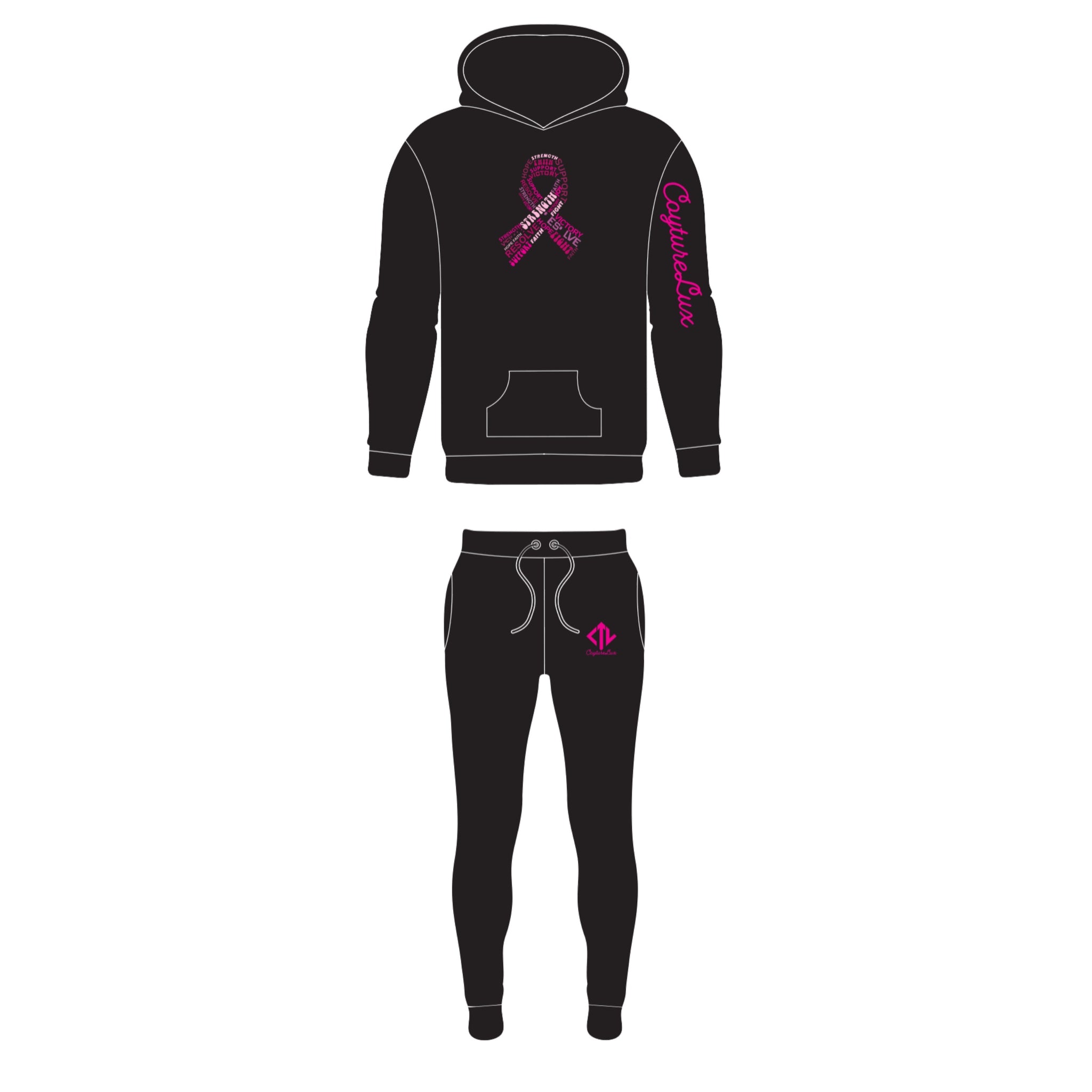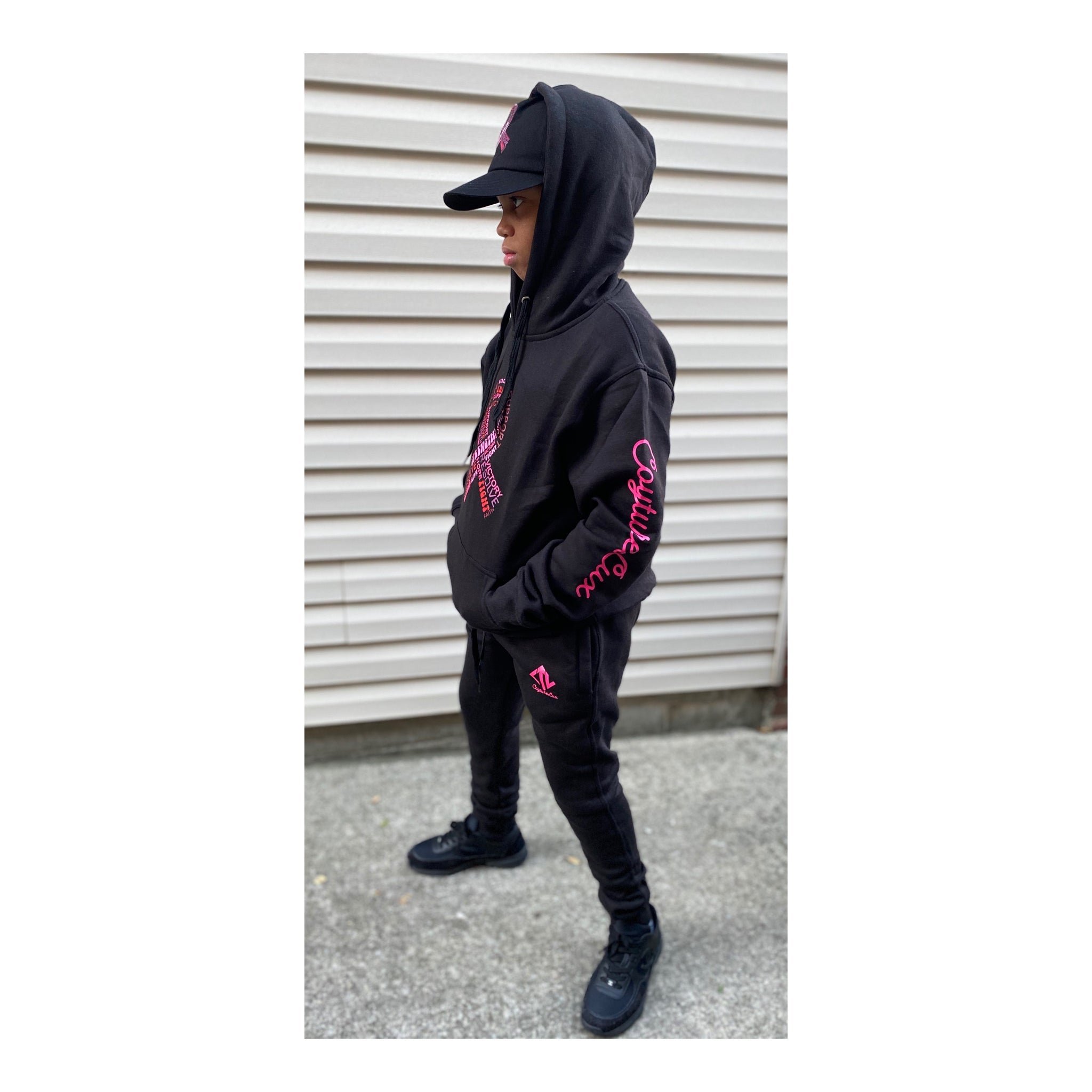 2 PIECE UNISEX HOODIE SET IN HONOR OF BREAST CANCER AWARENESS MONTH. *Black